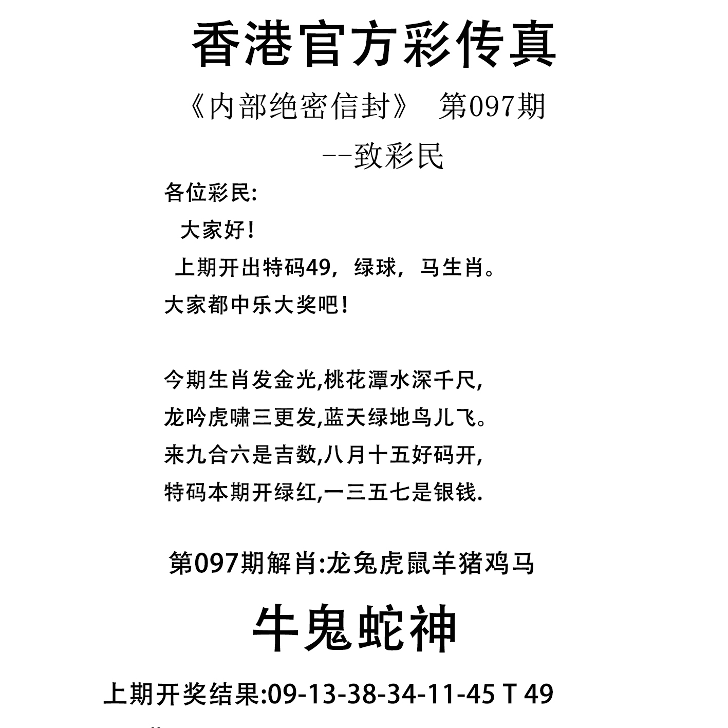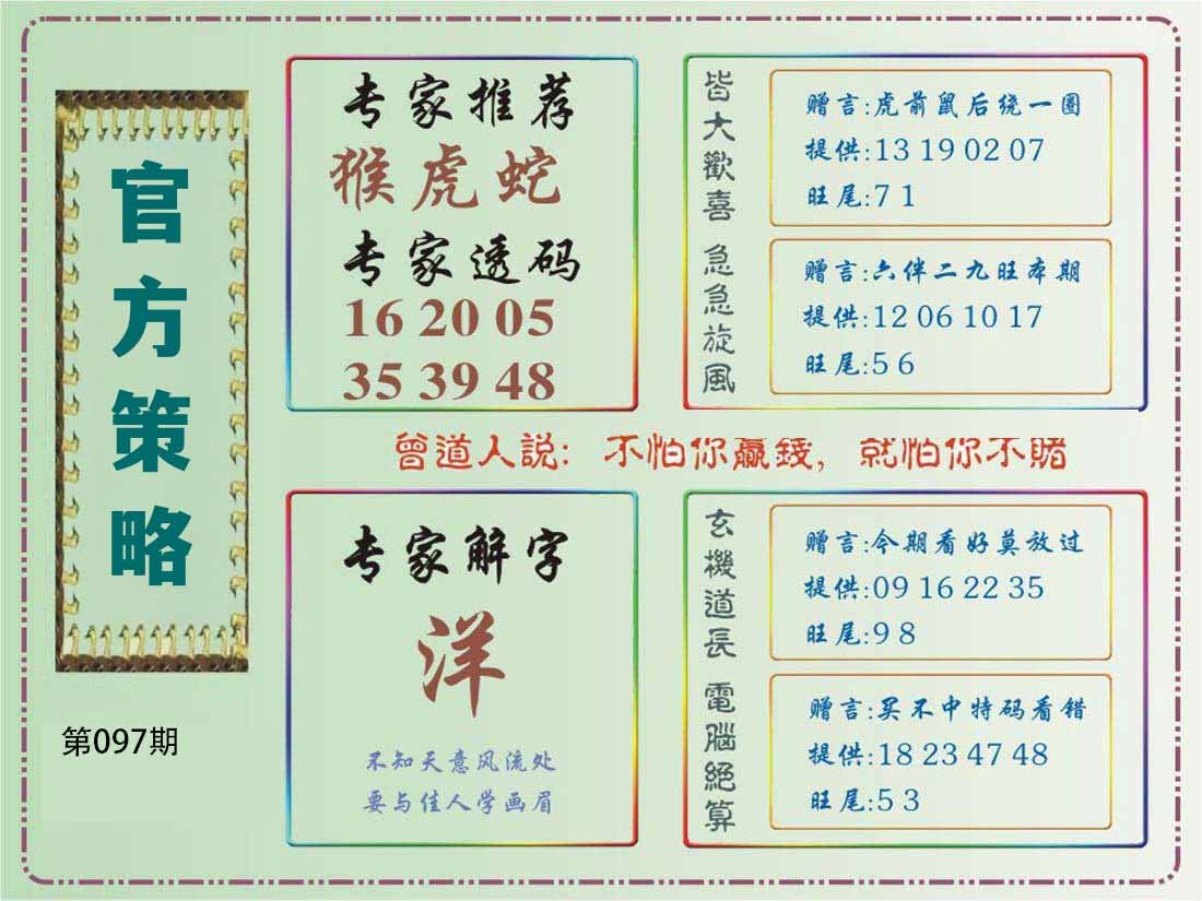 | 097期特开:(狗33)准100% | |||||