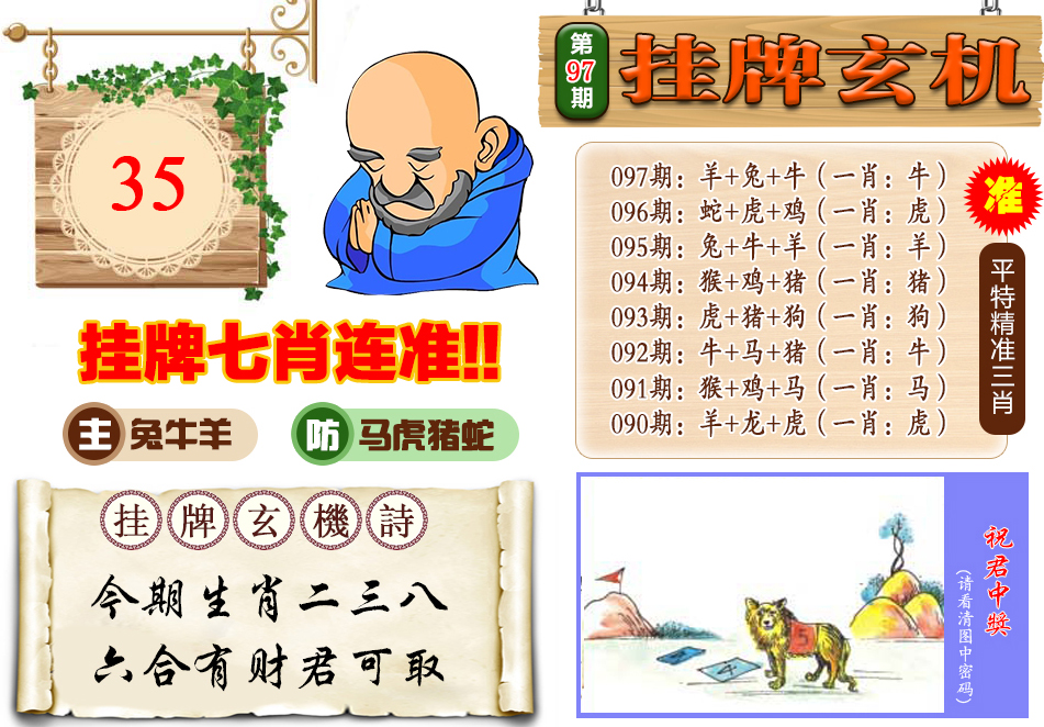 | 090期: ⑥肖 | 牛狗马兔猪羊 | 猪20 |