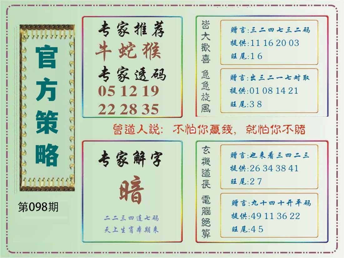 | 098期特开:(鼠31)准100% | |||||