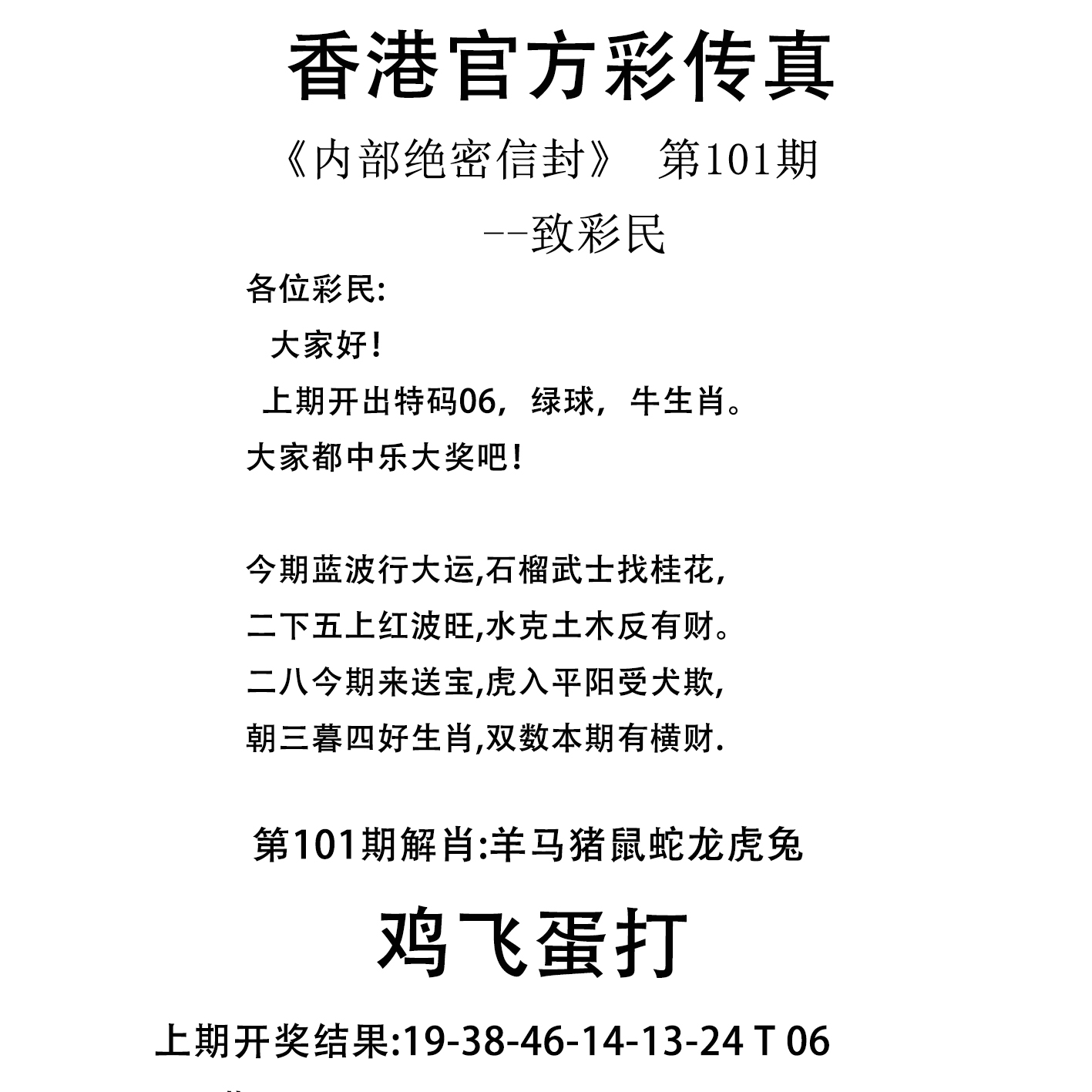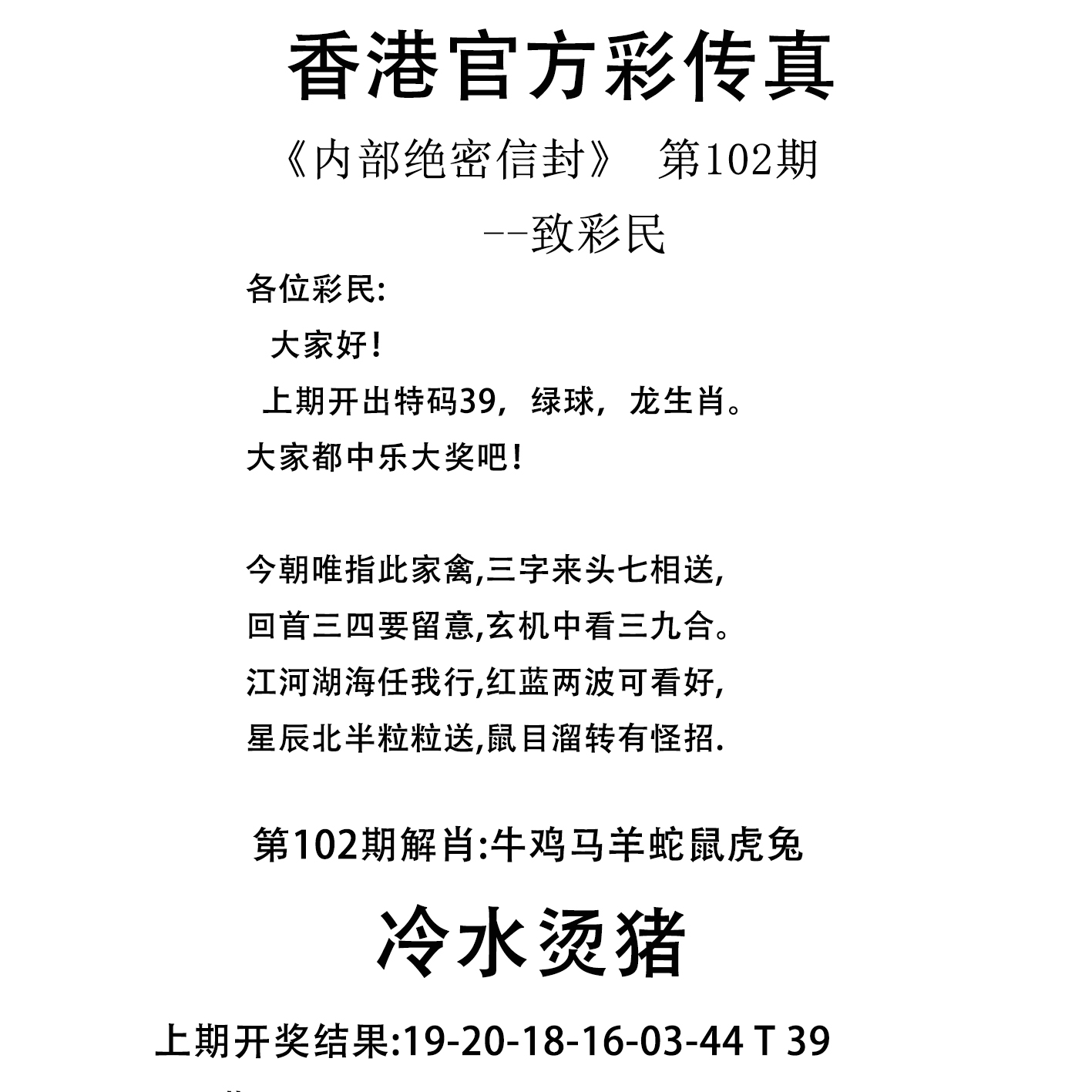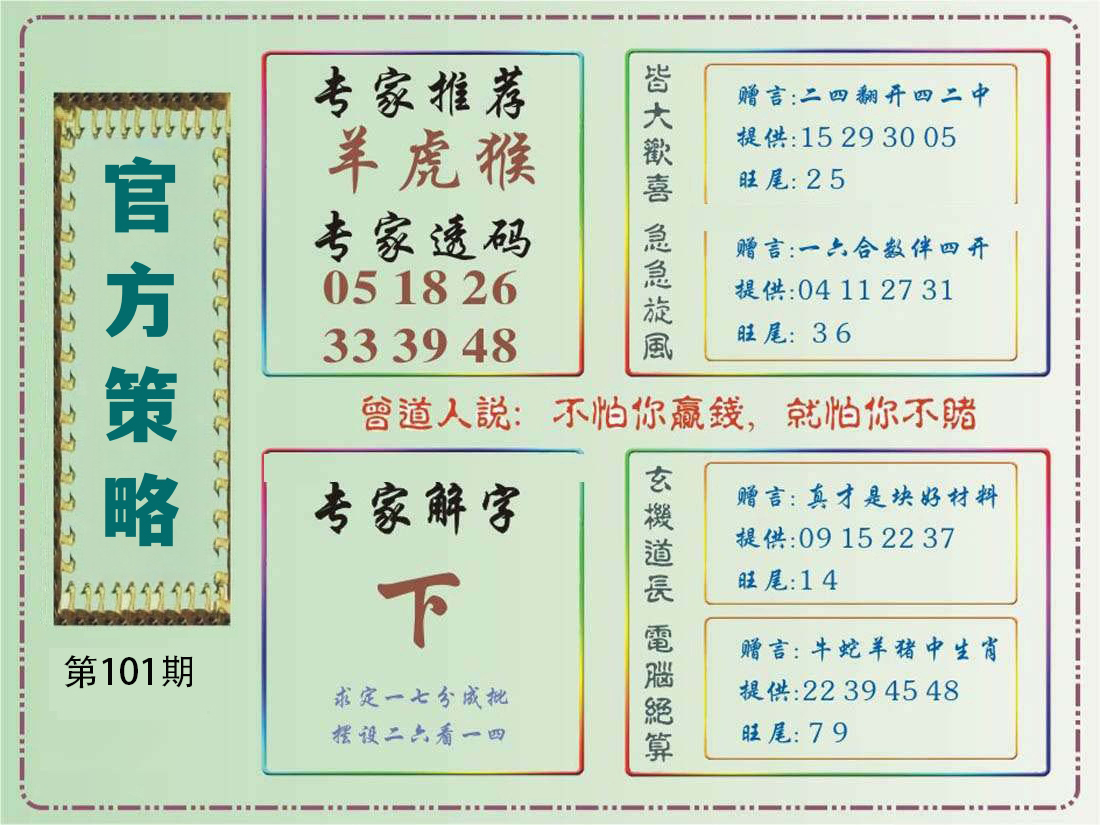 | 101期: | 平特二肖-->牛鸡 | 龙39 |