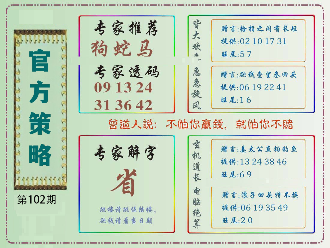 | 078期: ⑨肖 | 鼠蛇鸡兔虎羊牛狗龙 | 龙03 |