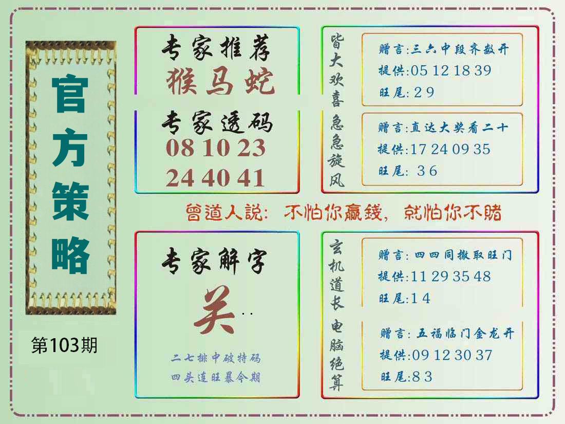 | 103期特开:(兔04)准100% | |||||