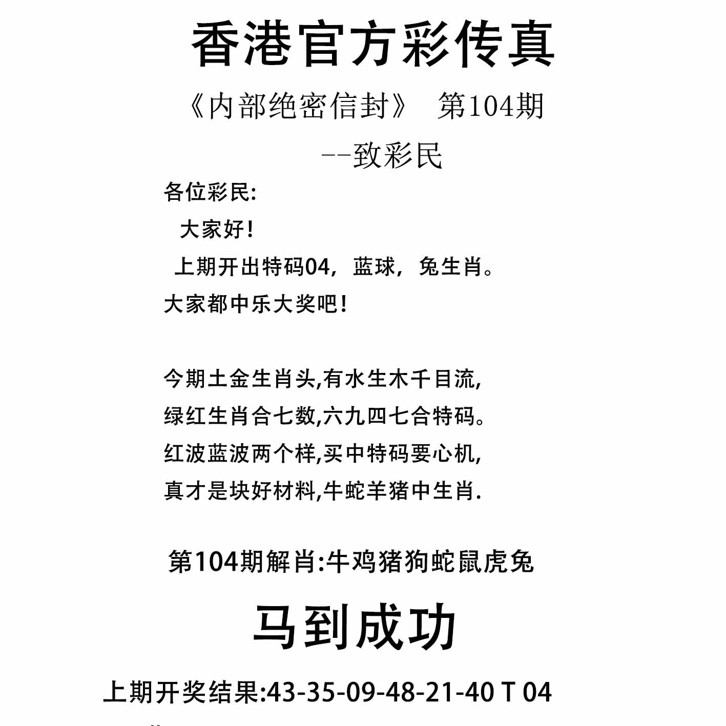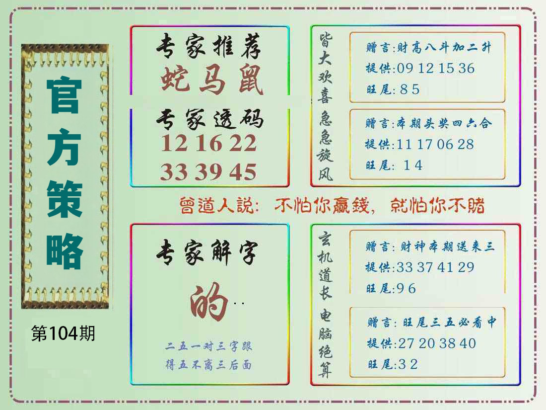 | 104期特开:(兔28)准100% | |||||