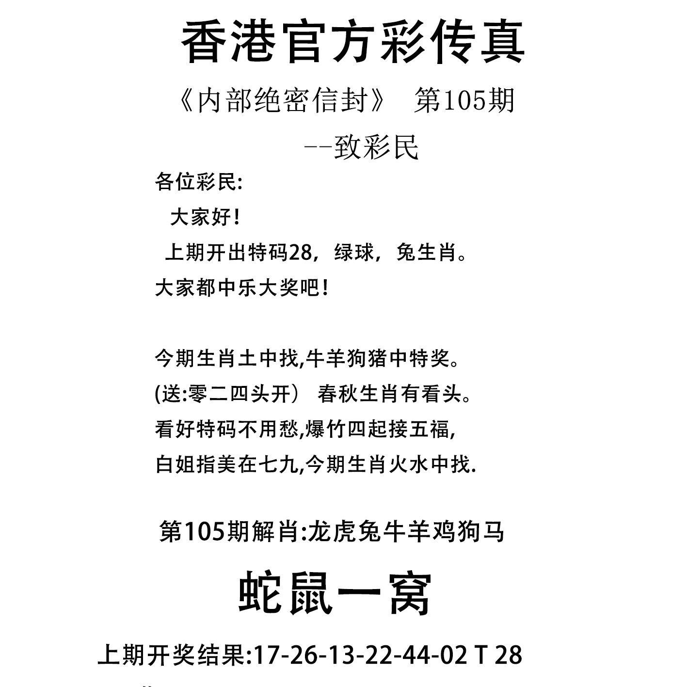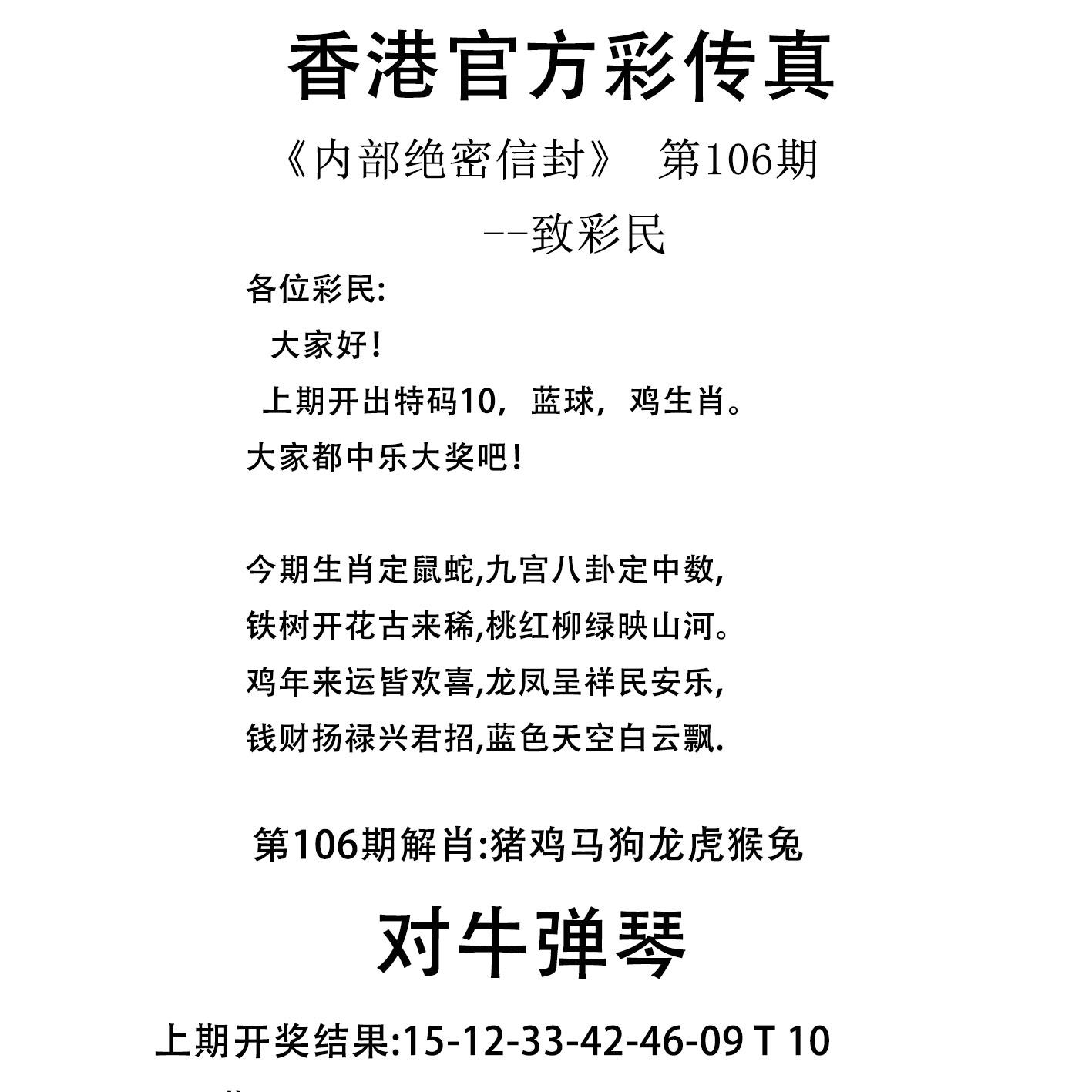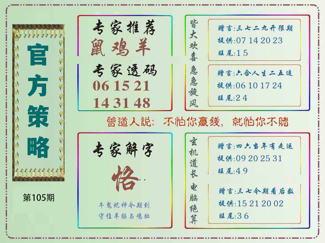 | 105期特开:(鸡10)准100% | |||||
