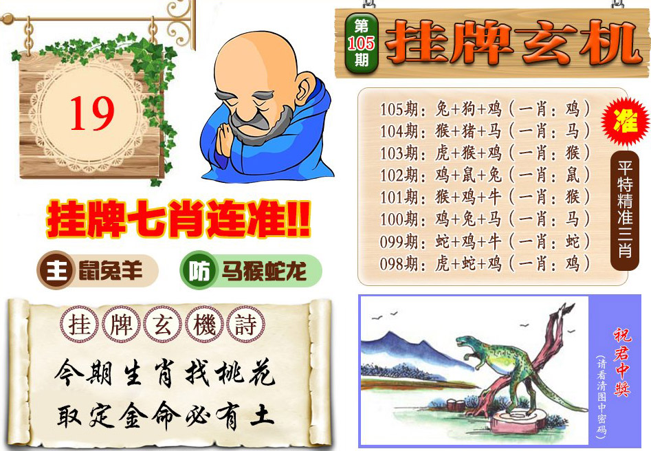 | 105期: | 平特二肖-->鸡虎 | 鸡10 |