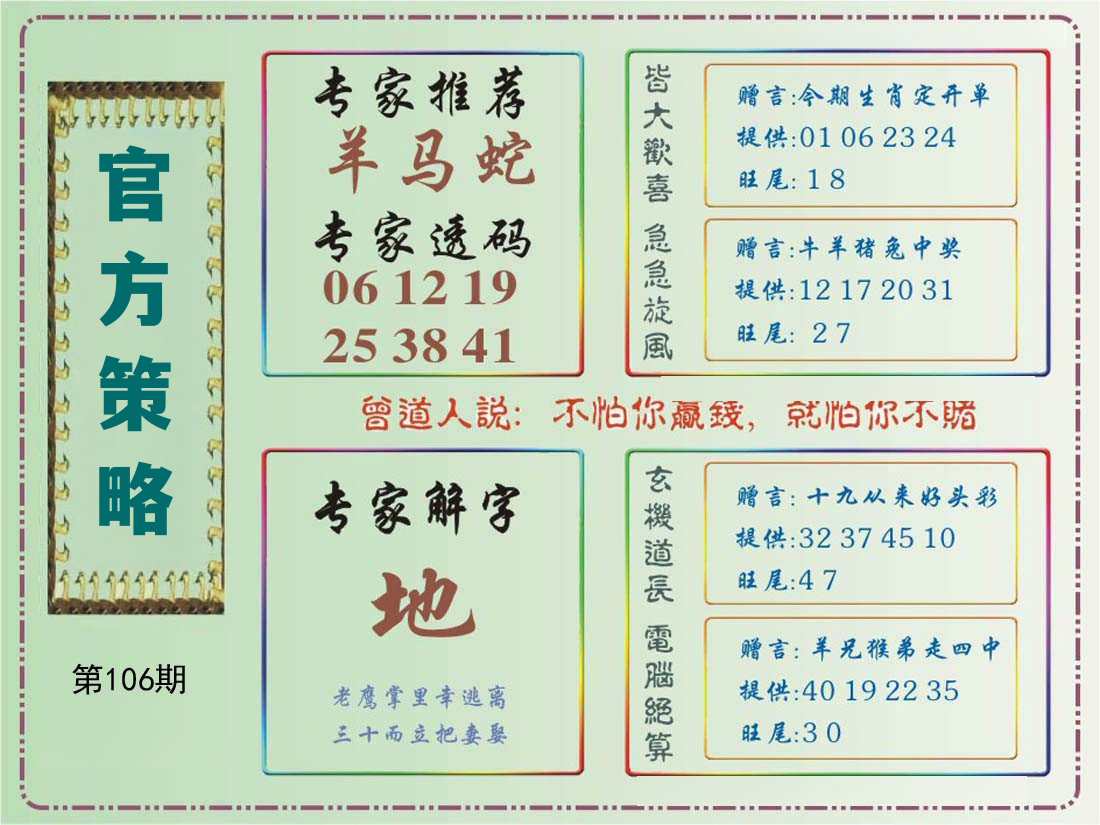 | 106期特开:(?00)准100% | |||||